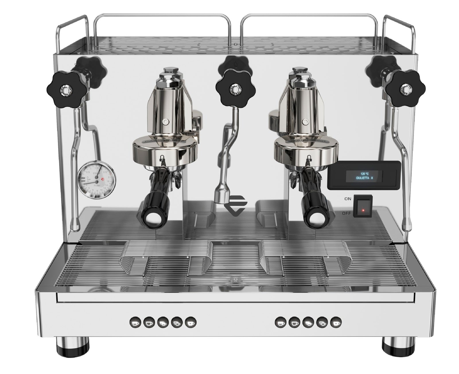 It allows to control both the steam boiler and water pressure during coffee extraction.